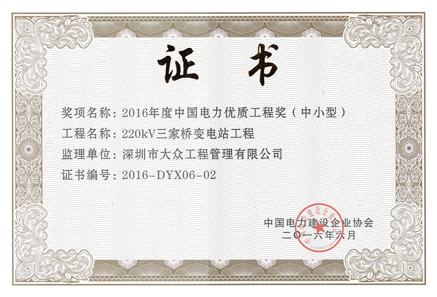 中国电力优质工程奖(2016年)